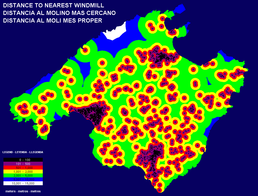 The map below shows the distance (flat) to the nearest windmill of any type.
